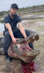 ALLIGATOR 5’-6’=$595 6’1”-7’=$795 7’1”-8’=$1,195 8’1”-8’10”=$1,395 8’11”-9’10”=$2,495 9’11”-10’10”=$3,750 10’11”-11’10”=$6,500 11’11” up please call! Yes, we do have big boys! Visitors/non-hunter $195 Large American alligator can be 13 feet and weigh over 1000 pounds. The largest ever recorded was 19.2 feet long. Alligators are native only to the United States and China. Alligators live in freshwater environments like ponds, lakes, marshes, wetlands, rivers, and swamps. This is a 100% guaranteed hunt!