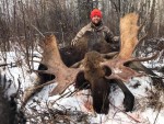 For this moose hunt we travel to the hardest spots to access in our area, some are up to 2 hours from our main lodge. We use a variety of camps which include trappers cabins, outfitter tents, campers and a portable refer van. These areas hold bigger moose on average due to their remoteness or hard accesses for resident hunters. Our goal is for moose 50 inches and up. This is a harder hunt for experienced hunters with a 85% success rate.