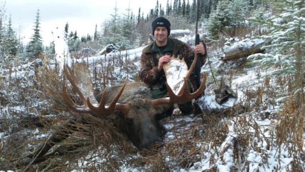 We offer quality hunts for Canadian Moose with very good success rates. The average antler spread of our moose is 45-55 inches with the occasional one reaching 60 inches. If you hunt moose for a living you better have a wolf management strategy and trapping wolves in our guiding area during the winter has paid off for us in a big way. Each year we are seeing more and more mature trophy bulls being taken by our hunters.