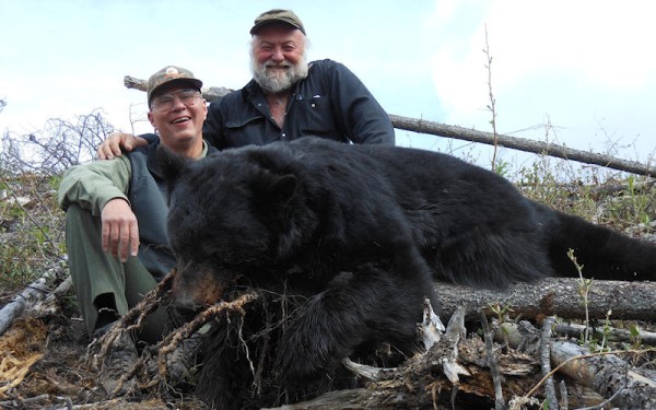 Black bear hunts are 5 days long and can be guided either 2 on 1, or 1 on 1. Spring hunting methods include 4×4 from basecamp or on foot. Black bear can be hunted on any fall hunt on a trophy fee basis.